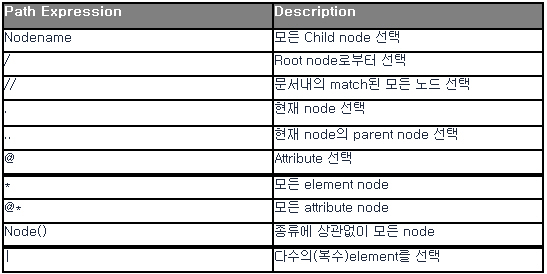 - Xpath는 Xml 문서내에서 노드와 노드셋을 선택하기 위해 path expression을 사용한다.